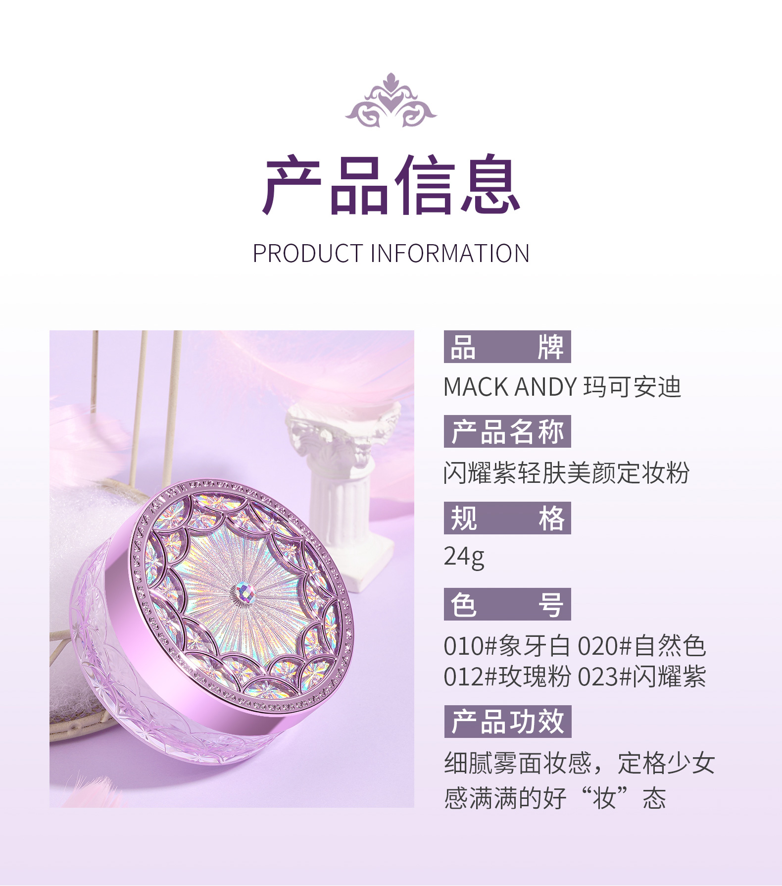 | Product Name | Mackandy Shine Purple Light Skin Beauty Setting Powder 023#Shimmering Purple |