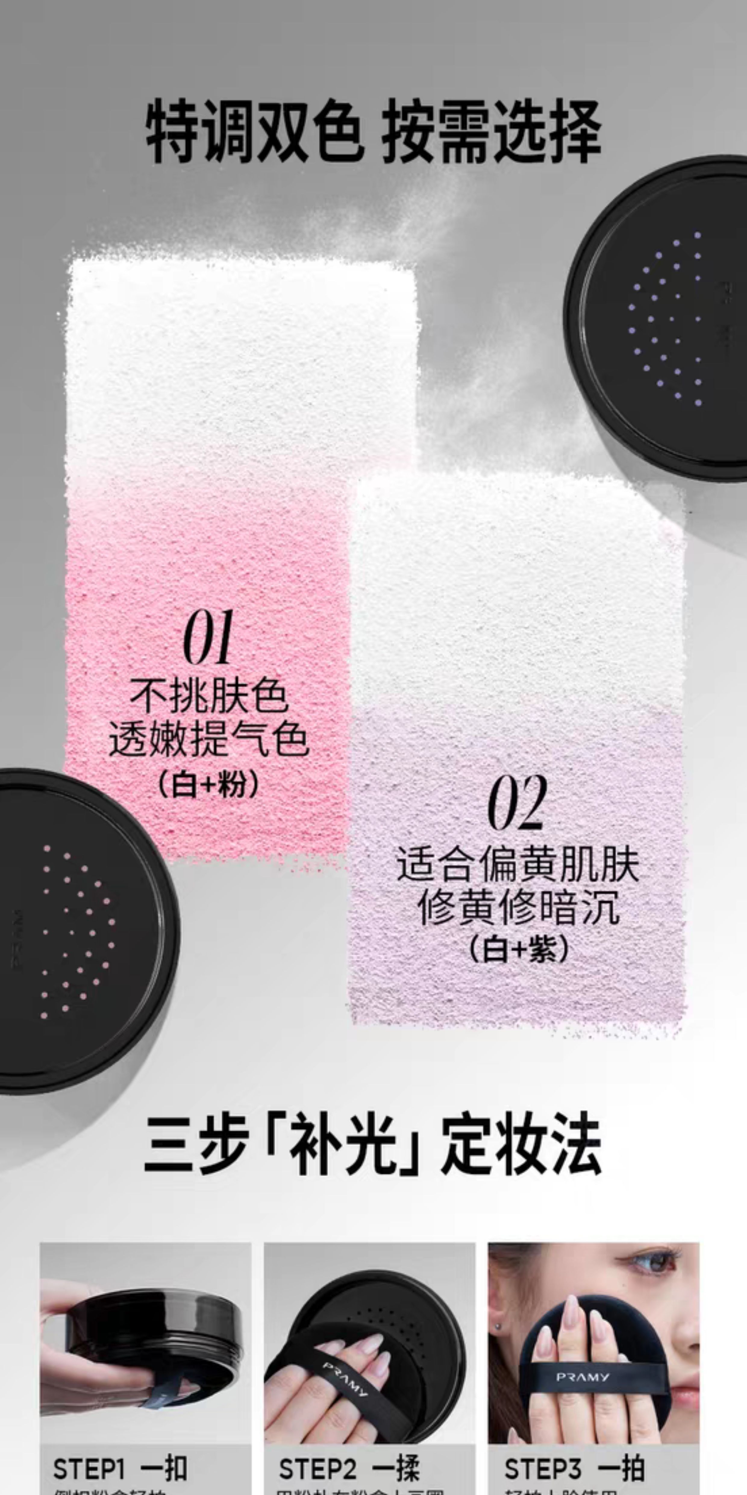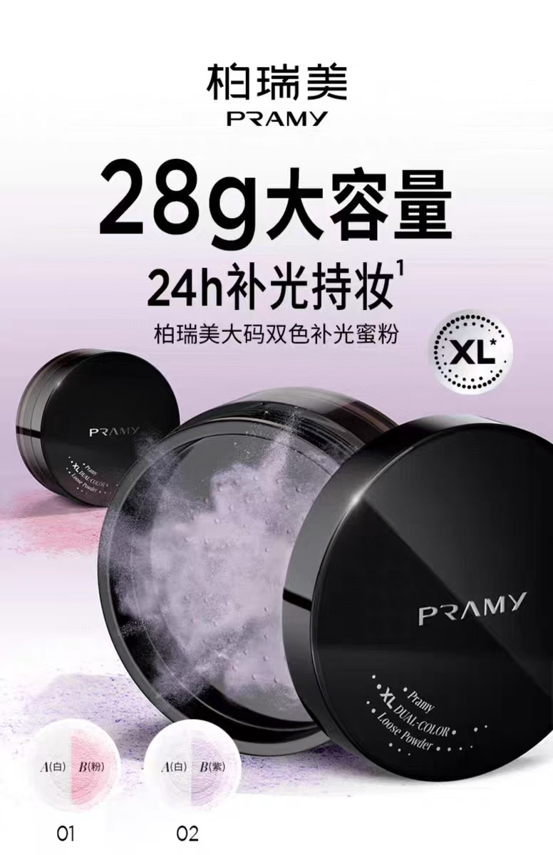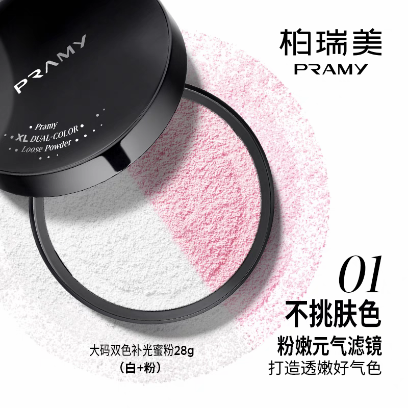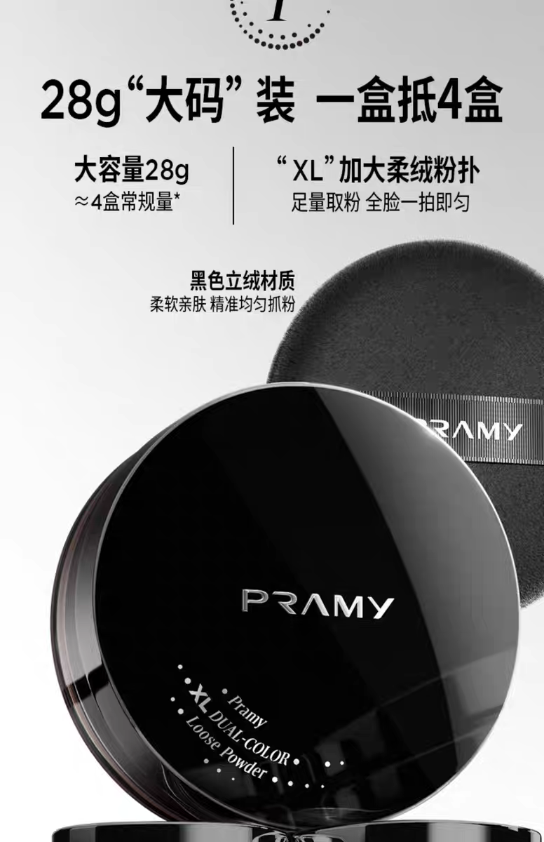 PRAMY Loose Powder 28g Two-Tone Highlighting Powder Moisturizing Oil Control Setting Powder Non-Caking Large Size Loose Powder